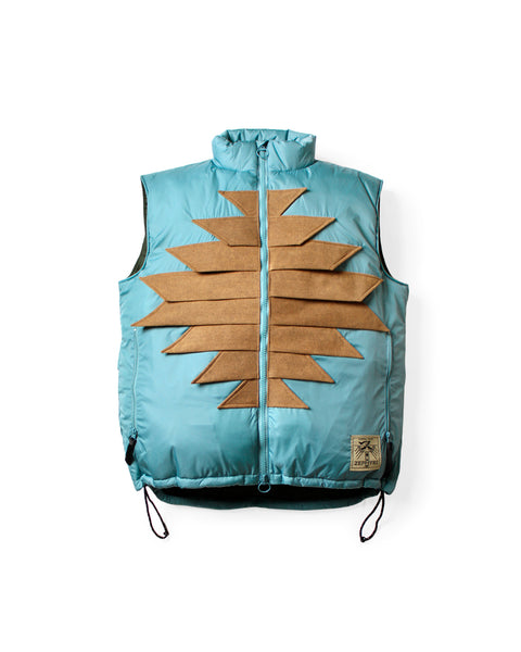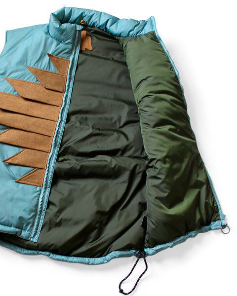 This padded fishing vest is made of nylon with synthetic leather sewn onto the front. The synthetic leather flaps form 12 pockets. There are a total of four zippered pockets on both sides and the back. The drawcord at the hem allows you to adjust the silhouette to your liking.