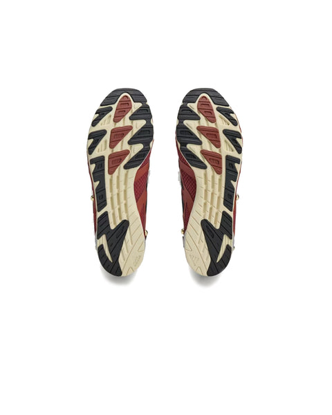 • The Adizero PR in red updates a performance running silhouette with subtle Song for the Mute detailing. The lightweight mesh upper is reinforced with layered synthetic panels, while gold metal studs adore the sneaker. White laces on the right shoe and red lace on the left contrast each other. and co-branded tongue labels highlight the collaboration, paired with reflective 3-Stripes. A beige midsole grounds the design.
