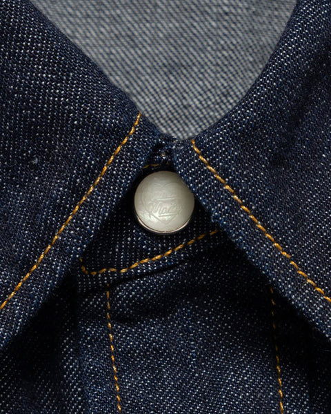 Denim western shirt with a regular fit ・ Lightweight denim recreates natural variations and creases ・ Features chain-stitched graphics ・ “DRY ALLS" embroidery above the left chest pocket ・ Western-style flap pockets on the chest ・ Pearl dot buttons with the brand logo ・ Three buttons on the cuffs