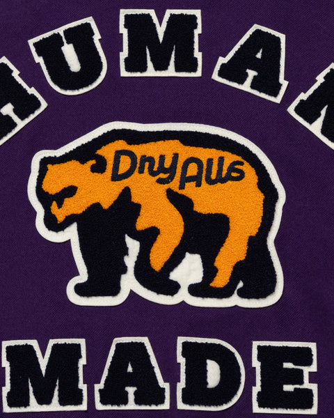 ・ Varsity jacket with a regular fit ・ Twill body with cotton lining ・ Shiny satin collar and sleeves ・ Felt patch with the brand logo on the left chest ・ Chunky Sagara patches feature on the right chest and back ・ Designed for three-season wear