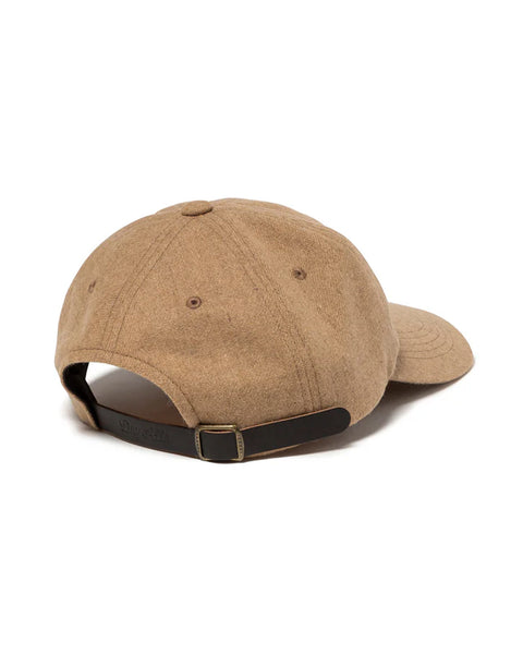 Six panel cap with a basic silhouette ・ Made from wool-nylon flannel ・ Brand logo embroidered on the front ・ Adjustable strap at the back ・ Leather adjuster embossed with “Dry Alls”