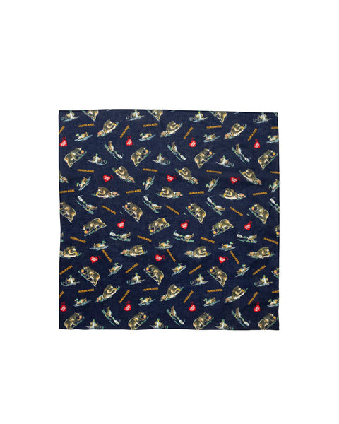 ・ Big bandana with an all-over print ・ Made from thin, lightweight cotton ・ Features both duck and bear graphics ・ Graphics expressed with dye printing ・ Opens up a range of styling options